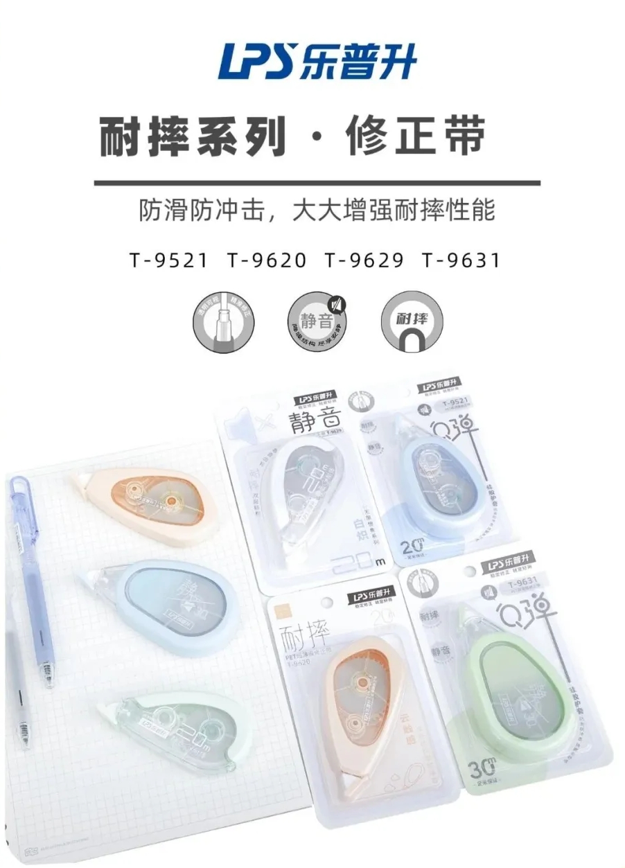 产品涵盖修正带系列、书写工具、益智创意、PP纸品等多品类产品